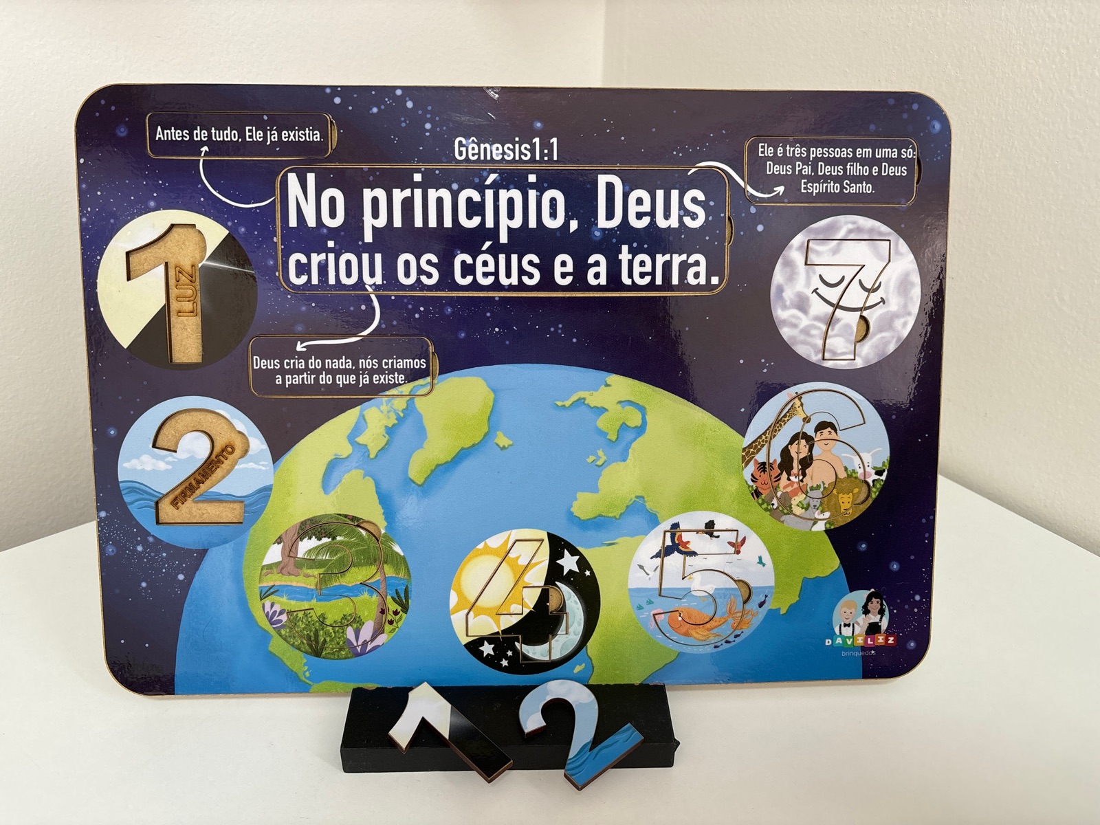 Com esse brinquedo se aprende os números associando-os ao que o Senhor nosso Deus fez em cada dia.